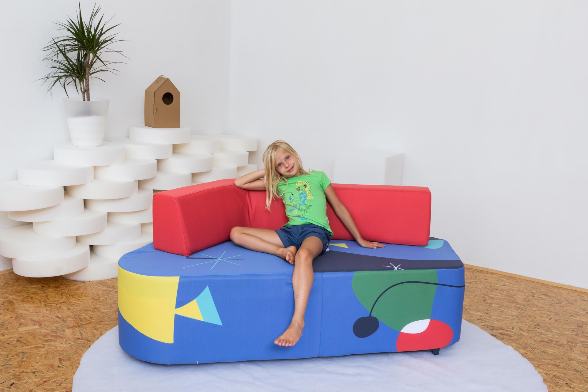 Atraktivna sedežna garnitura primerna za najstniški kotiček ali sobo.
